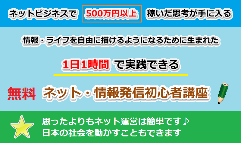 そして、この講座の中に私がネットビジネスで500万円以上稼いだ情報発信思考も入れるようにしています。