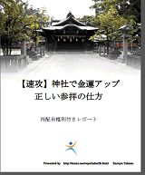 神社での正しい参拝方法が記載されているレポートです。 業界大物や大金持ちも密かに実践されている方法です。 参拝する際の心のありようで効果が変わってきます。