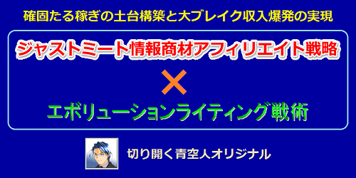 ジャストミート情報商材アフィリエイト戦略×エボリューションライティング戦術等の教材や、